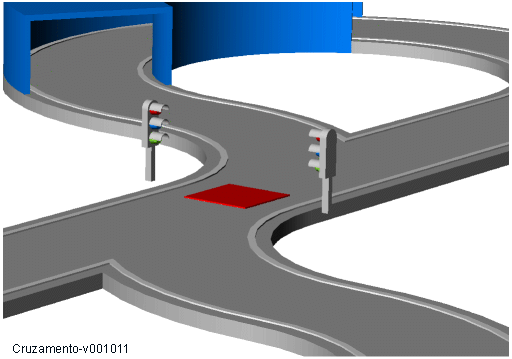 Durante cada passagem, o controlador de semáforos deverá, de forma autónoma, mudar aleatoriamente entre os estados de seguir pela esquerda ou pela direita. Em duas das três vezes que o robot passa pelos semáforos no decurso de uma passagem (sem contar com partida e chegada), o controlador gerará o estado vermelho durante 5s após o que transitará para um dos outros dois estados. Este lapso de tempo é contado a partir do instante em que o robot entra na zona de partida/chegada. Note-se, ainda, que qualquer que seja a direcção indicada pelos semáforos, o perímetro da pista mantém-se constante.