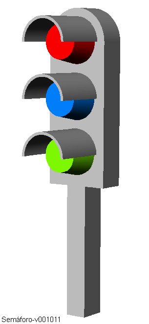 Na zona de partida/chegada existirá um par de semáforos luminosos. A sua função é a de orientar a prova dos robots dando-lhes ordem para: 1-parar; 2- seguir sobre a direita; 3- seguir sobre a esquerda. A correspondência entre a função e a informação luminosa é a seguinte: lâmpada superior, vermelha, função 1; lâmpada intermédia, azul, função 2; lâmpada inferior, verde, função 3.